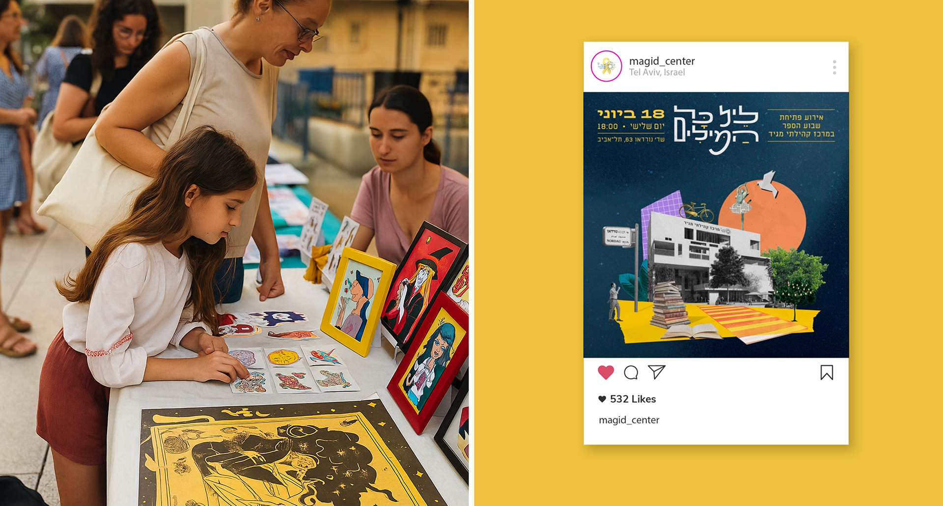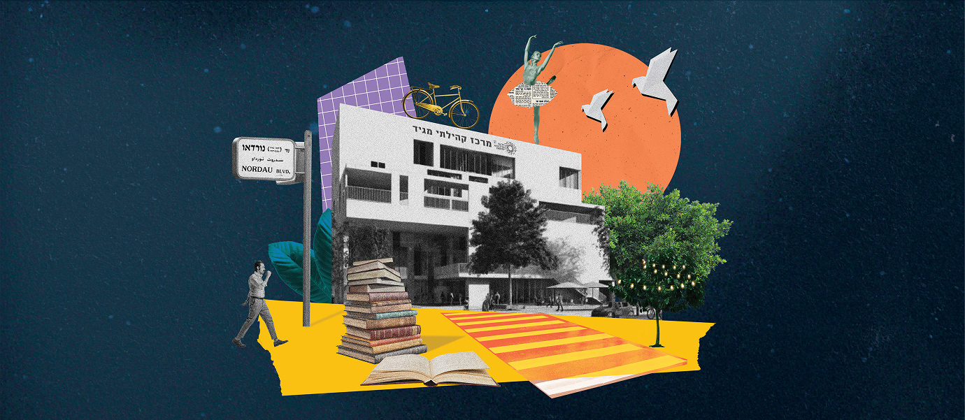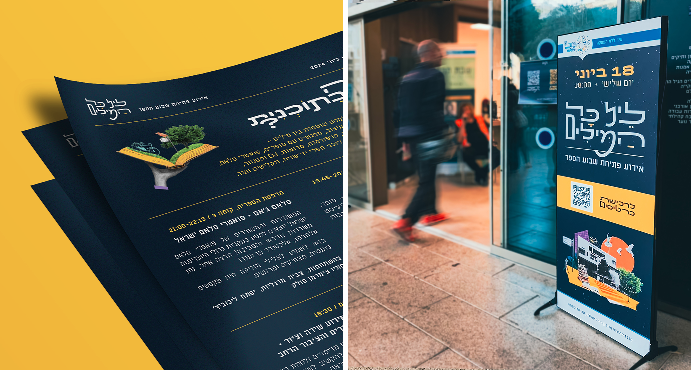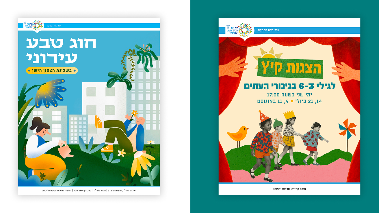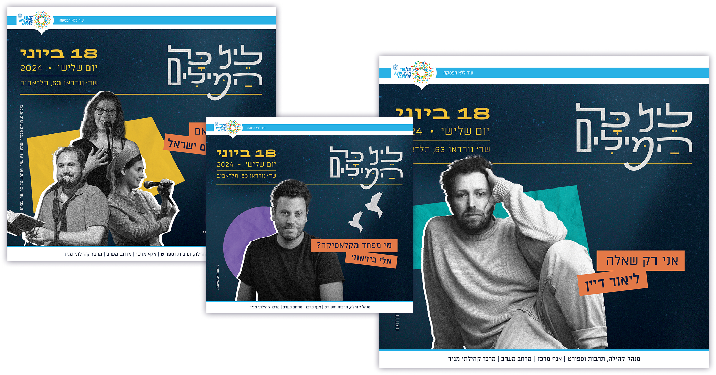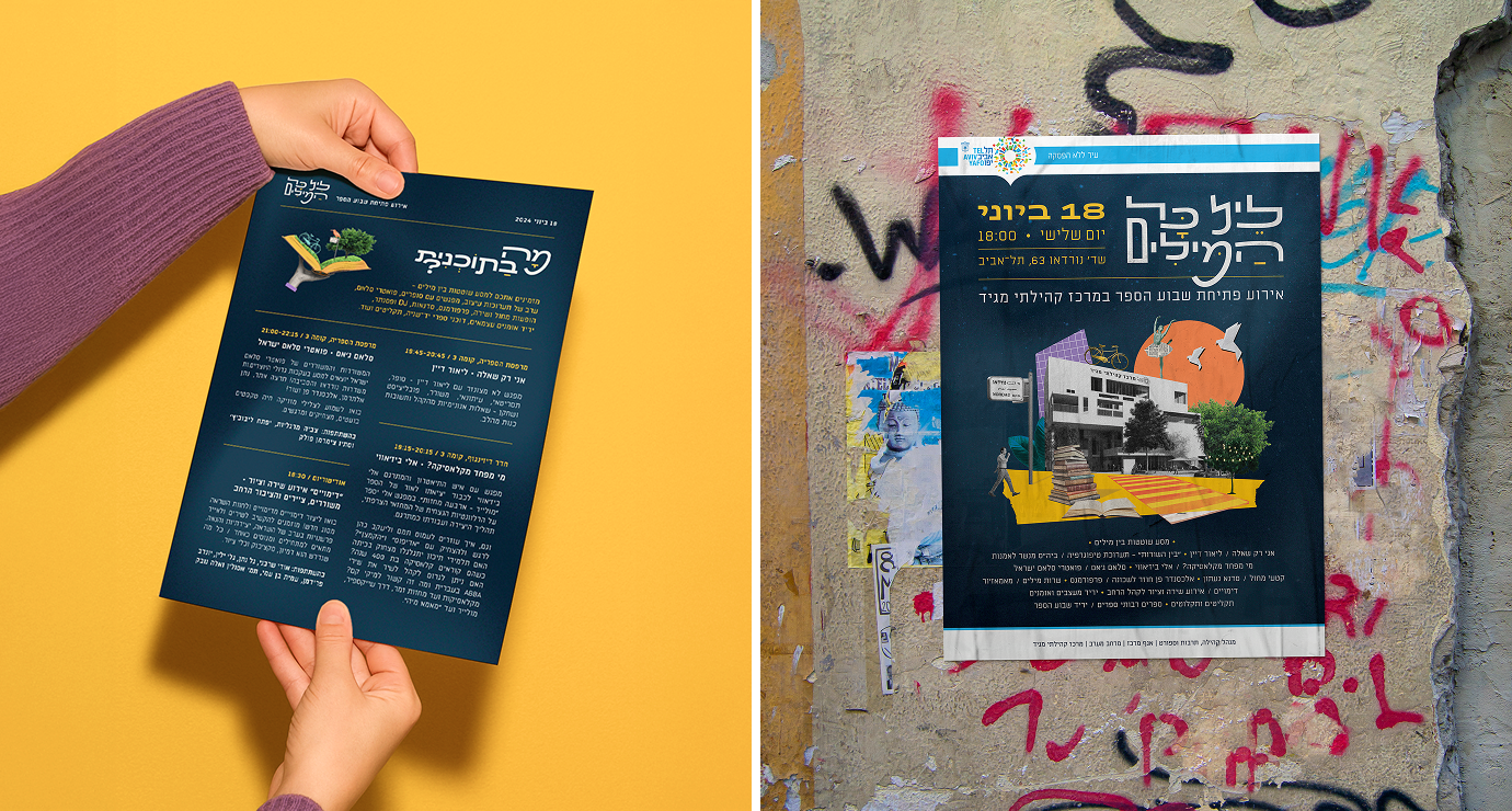 Branding and collage illustration for a city event marking the opening of Tel Aviv Book Week.